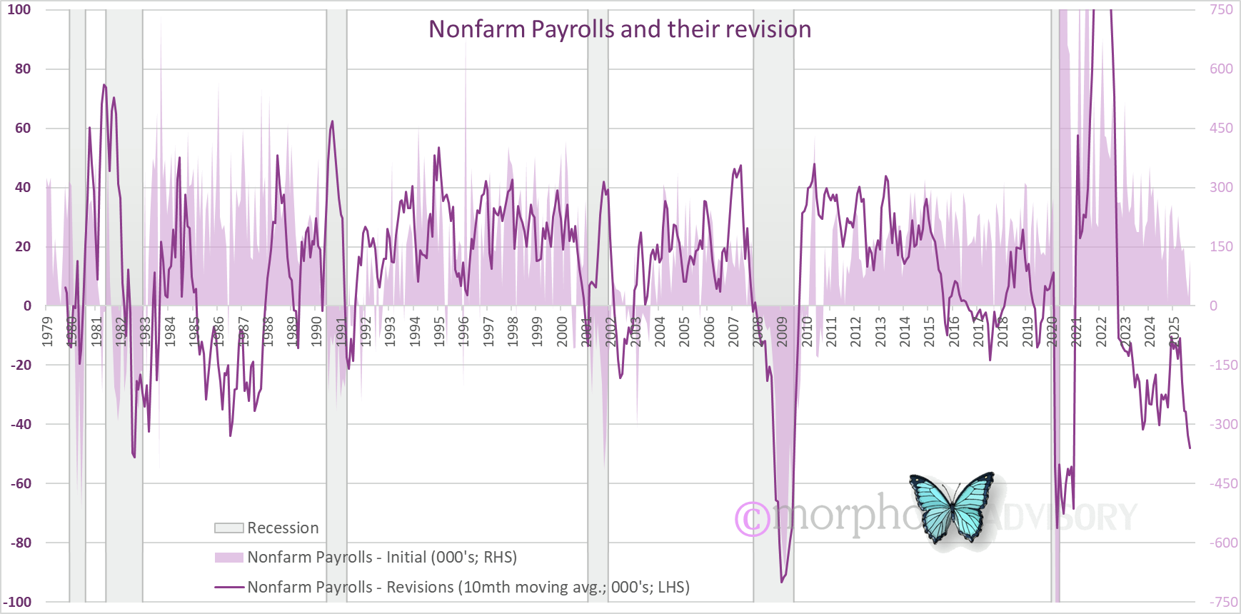Then we have an acceleration to new cycle lows of the downward revision to U.S. nonfarm payrolls data.