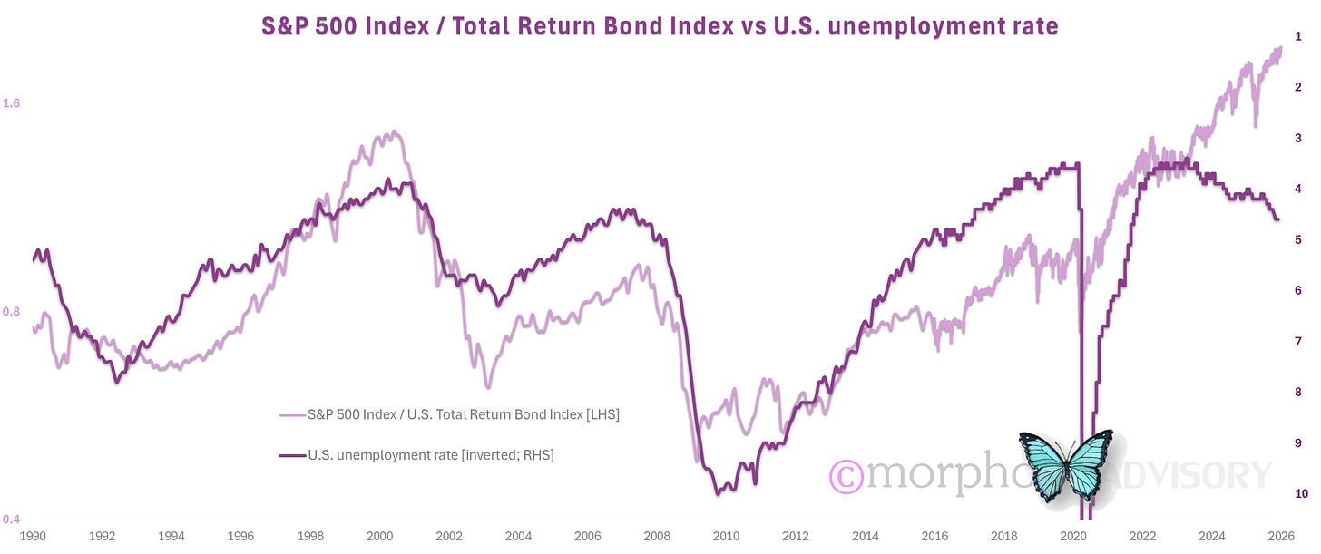 Perhaps the divergence between the U.S. unemployment rate and the relative value of the stock market to bonds will persuade you?