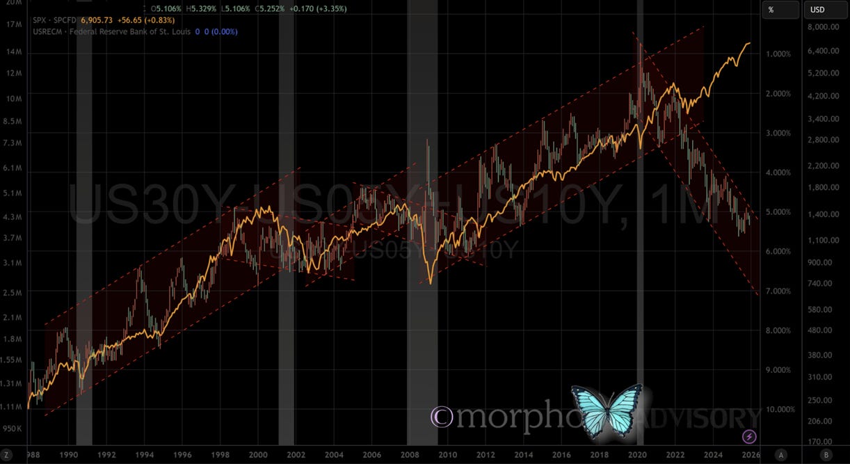 When I combined these on the same chart it was easy to see that AI hasn’t broken the economy but it is, in fact, the stock market that had broken with reality.