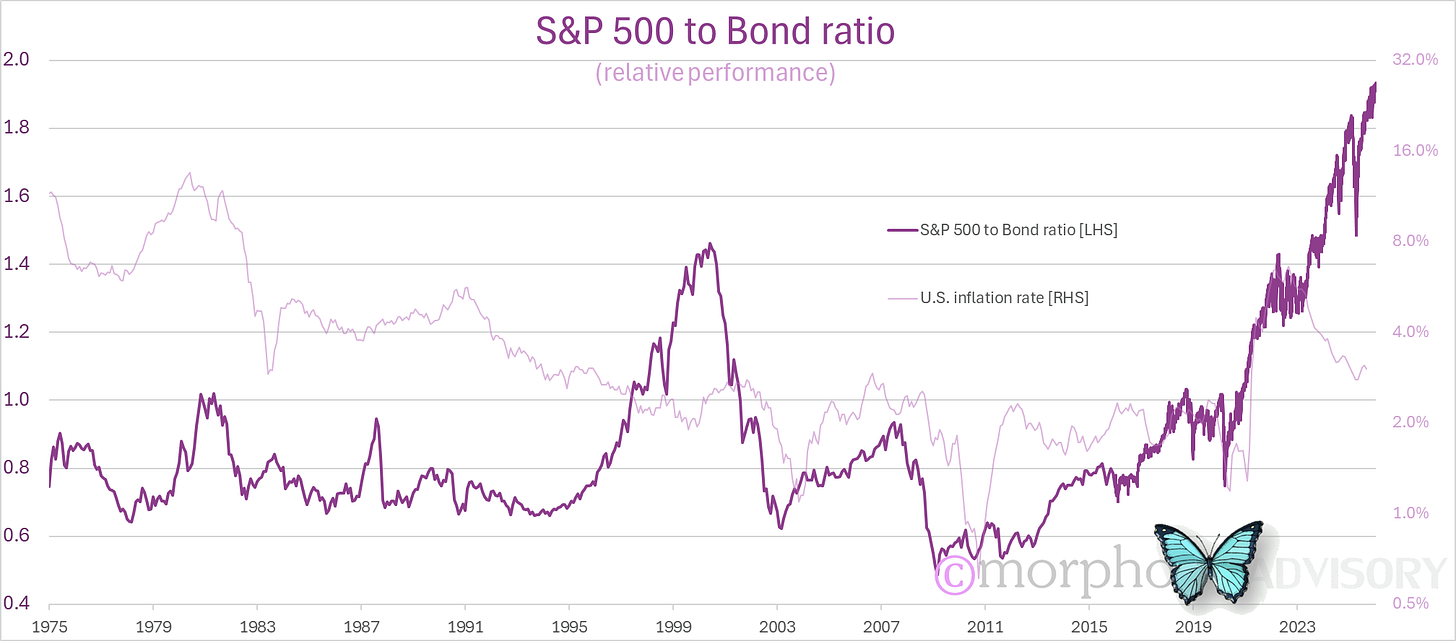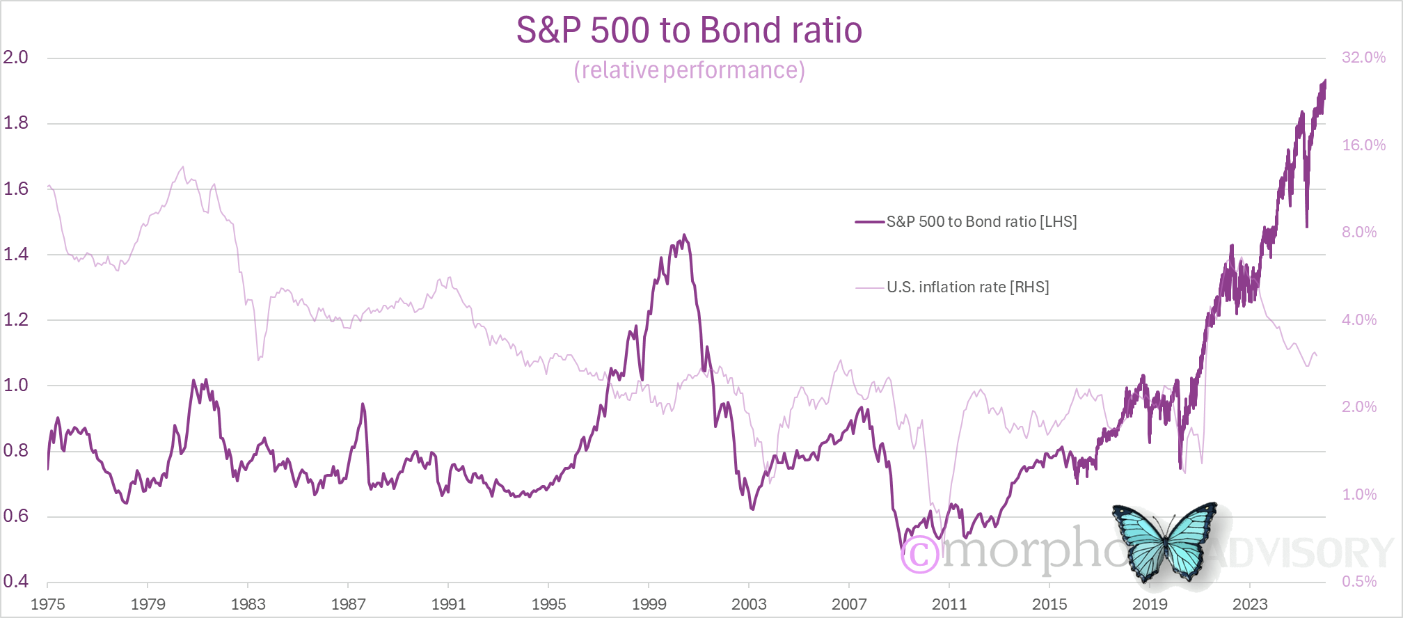 No? But it’s showing up in the inflation rate’s divergence from the relative value of stocks to bonds, too.