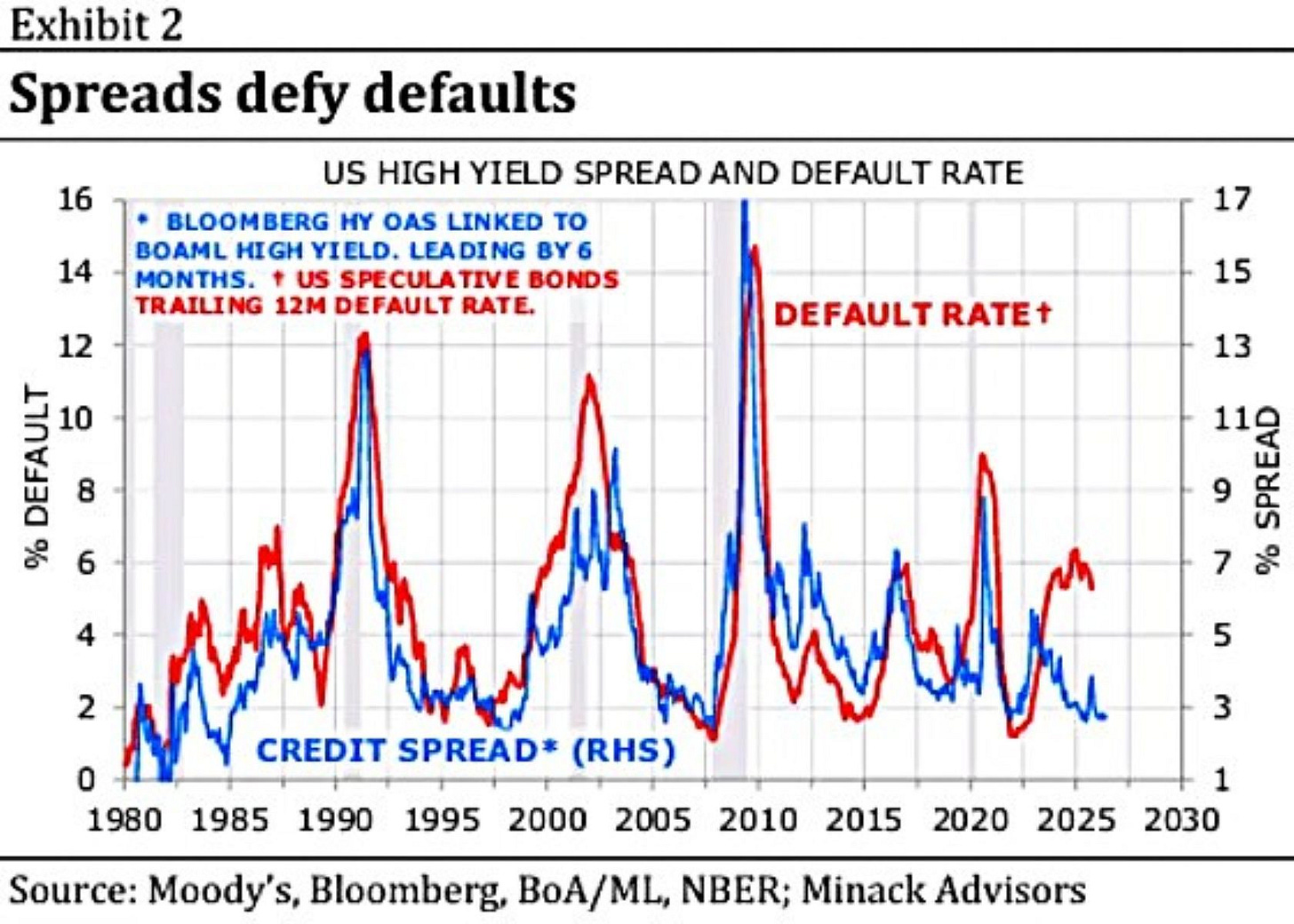 Credit markets are showing a divergence from corporate default rates over the same time period.